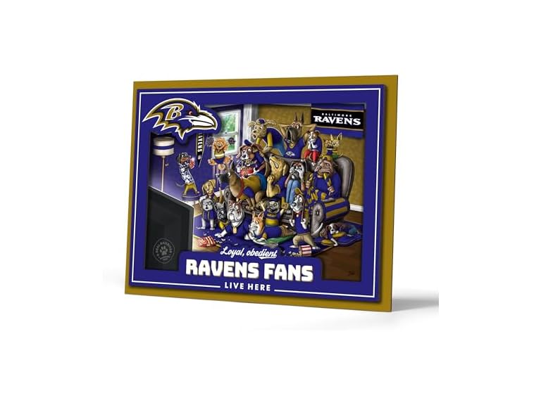 - (1) YouTheFan Officially-licensed NFL Baltimore Ravens Purebred 3D Wall Art - Humorous original hand-drawn cartoon artwork, multi-layer, funny gift, indoor team decor