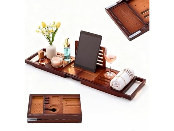 - Space-Saving & Easy Storage - When your spa moment is over, convenience continues. This bamboo bath tray features a clever foldable design, allowing it to lie flat or be stored upright in narrow spaces. It easily tucks away beside your toilet or in a cabinet, making it the perfect space-saving tub caddy tray for bathtub for even the coziest of bathrooms. Enjoy luxury without sacrificing precious storage space.