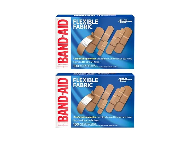 - Band-Aid Brand Flexible Fabric Adhesive Bandages for Comfortable Flexible Protection & Wound Care of Minor Cuts, Scrapes, & Wounds, Assorted Sizes, Twin Pack, 2 x 100 ct