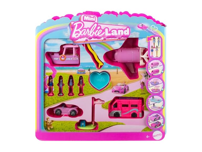 - Barbie Mini BarbieLand Multi-Pack Doll & Toy Vehicle Set with 4 Dolls 1.5-inches Tall & 4 Iconic Vehicles with Color-Change Surprise