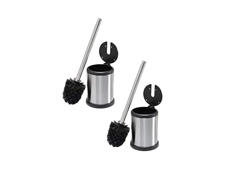 - (1) Bath Bliss Stainless Steel 2 Pack Self Closing Lid Toilet Brush and Holder, Finger Print Proof, Compact, Small Space, 6980-2PK, Silver
