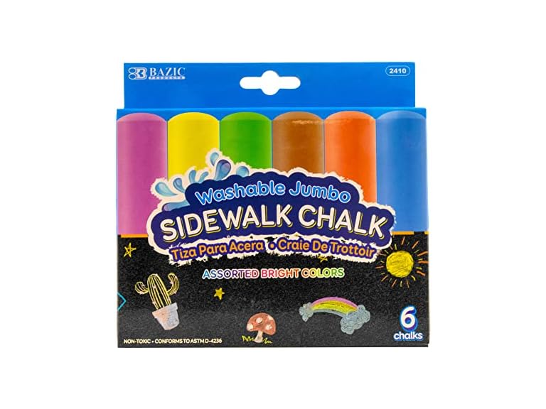 - (1) BAZIC Products Jumbo Sidewalk Chalks 6 Colors, for Outdoor Coloring Drawing Art, Gift for Kids Teacher, 1-Pack