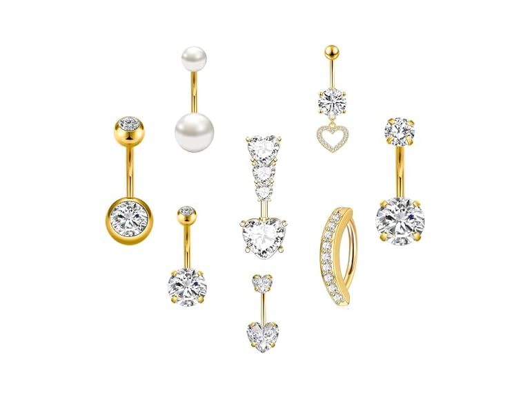 - Belly Button Ring Pack--Come with 8pcs different style belly button rings, including opal belly button ring, pearl belly rings, simple ball belly ring, cz belly rings piercings, clicker belly ring etc. More belly pierecings choices for everyday wear