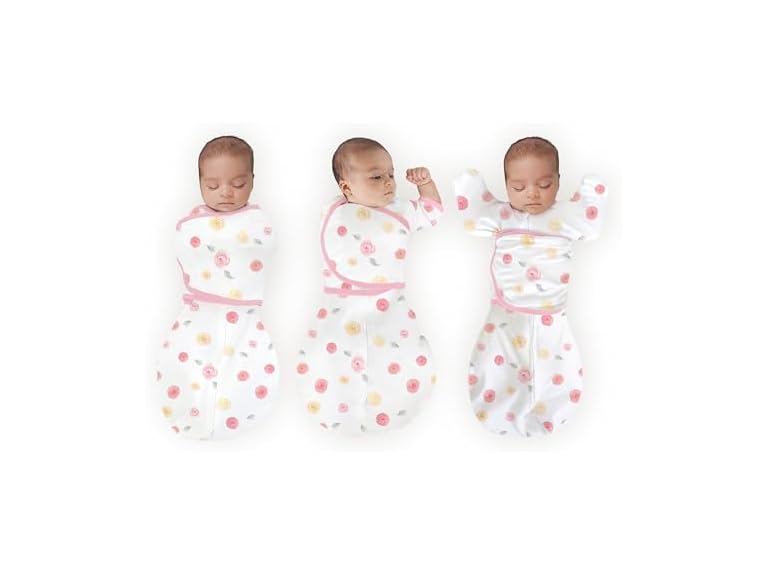 The 6-way Omni Swaddle Sack with Adjustable Wrap and uniquely-designed 1/2 length sleeves with mitten cuffs is the Ideal Swaddle. The ergonomic and convertible design supports more natural hand and arm positions and provides parents with more options when preparing baby for safe sleep. The design allows parents to swaddle with (1) arms up, (2) hands up, and (3) arms on chest under the wrap. The sleeves with mitten cuffs keep baby's arms warm and parents do not need to dress baby in a bodysuit. Foldover mitten cuffs may be worn open or closed, parents can open the cuffs, so baby can self-soothe by sucking on hands or close the cuffs to protect baby from facial scratches. Many experts recommend parents to swaddle baby with hands within reach of mouth, so baby can self-soothe. Babies who can self-soothe sleep longer and better. When baby is swaddled with hands up or arms up, baby can self-soothe by sucking on hands. The ergonomic, patented design with 2-way zipper is easy to use. The adjustable wrap is narrow and does not interfere with baby's hips and the soft hook-and-loop fasteners make it easy to swaddle baby. The 2-way zipper allows parents to unzip from the bottom to check baby's diaper without unwrapping the swaddle. The 2-way zipper makes it easy to place baby in the sack by unzipping from the top. Small 6-14 lbs, 0-3m. When baby is over 3 months or baby shows signs of attempting to rollover, the AAP recommends that parents stop restraining baby's arms with a swaddle or wrap. Parents can use the Omni as a transition swaddle with arms up. When baby outgrows the Omni Swaddle Sack, we recommend an Amazing Baby Transitional Swaddle Sack® or a Sleeping Sack wearable blanket. Super soft, premium cotton knit is breathable, stretchy, and natural. Baby will love the softness. 100% Cotton. Machine wash. Tumble dry. Designed by nurse. US Patents 11,659,870 & D924,539. Int’l patents EU, UK, Korea, Canada.