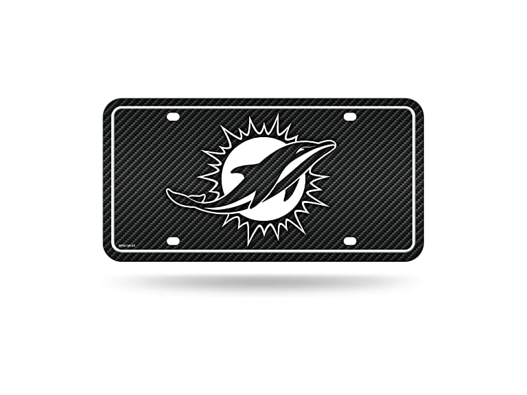 - (1) Rico Industries NFL Football Miami Dolphins Carbon Fiber Metal Auto Tag 6" x 12" - Great For Truck/Car/SUV