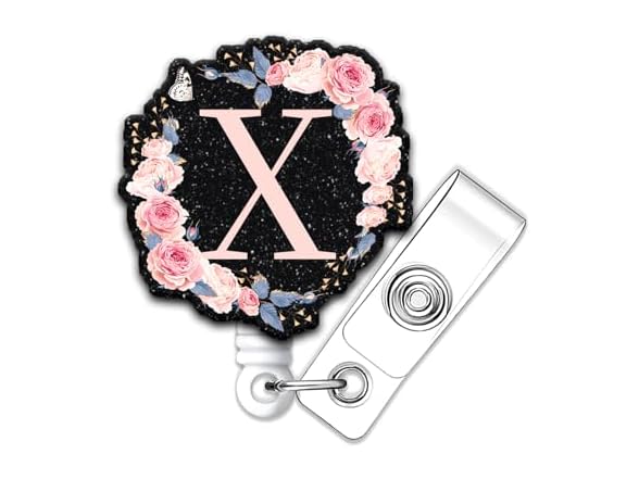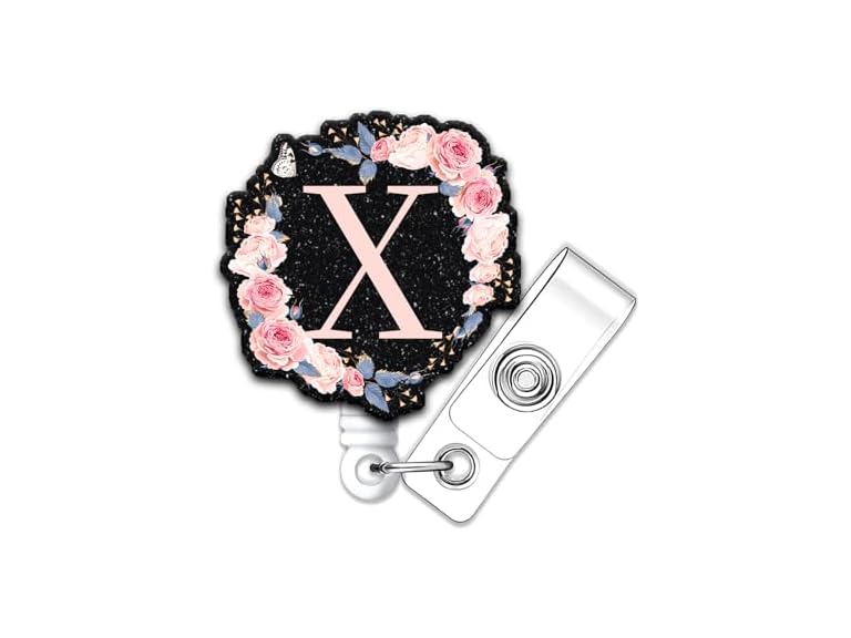 - (1) Bclelct A-Z Letter Badge Reels Holder Retractable with ID Clip for Nurse Name Tag Card Cute Nursing Doctor Teacher Student Medical Work Office X