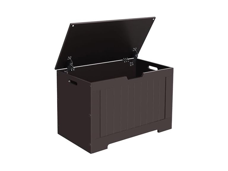 - (1) VASAGLE Storage Chest, 29.9 Inches Width Storage Bench, Entryway Bench with 2 Safety Hinges, Shoe Bench, Farmhouse Style, for Entryway, Bedroom, Living Room, Espresso Brown ULHS11BR.