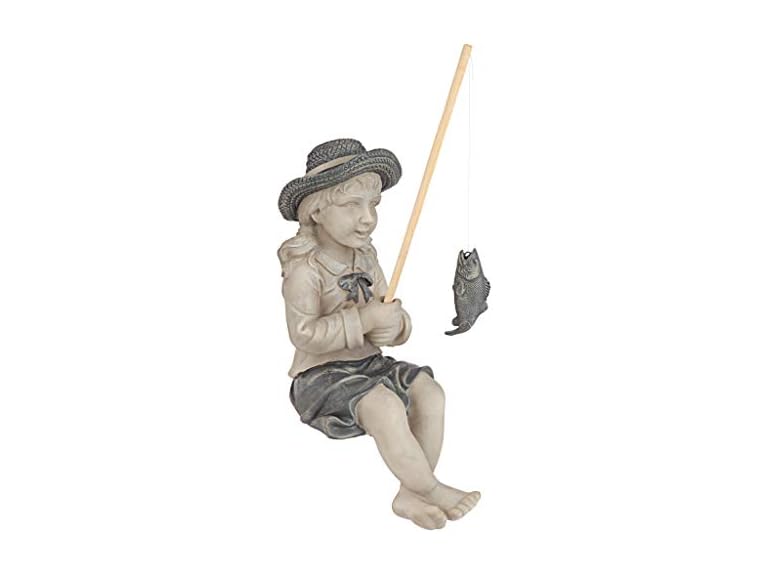 - Design Toscano Big Catch Fisherwoman Nellie Girl with Fishing Pole Garden Statue, Medium 17 Inch Tall, Cast Stone Resin, Two Tone Stone Finish