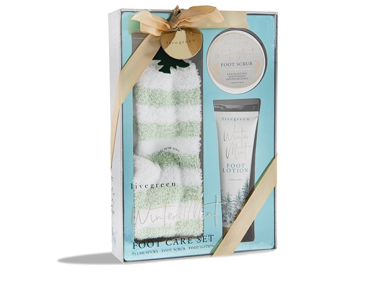 Live Green Bath and Body Gift Set- Foot Spa Set with Fuzzy Socks, Lotion, and Scrub (Winter Mint)