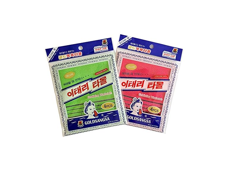 - (1) HMI Korean Bath Exfoliating Washcloth Body Scrub Towel 8 Pcs - Red 4 Green 4 Small Size GOLDSANGSA