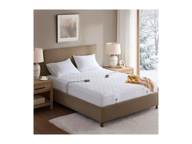 - (1) Beautyrest Cotton Blend Heated Mattress Pad Secure Comfort Technology - Luxury Quilted Electric Mattress Pad with Deep Pocket - 5-Setting Heat Controllers, King, White