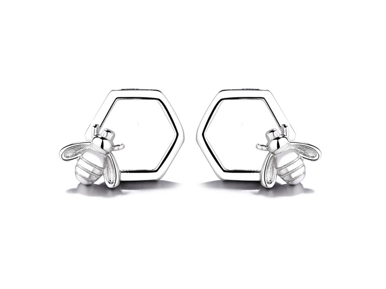 - (1) 925 Sterling Silver Bee Honeycomb Stud Earrings