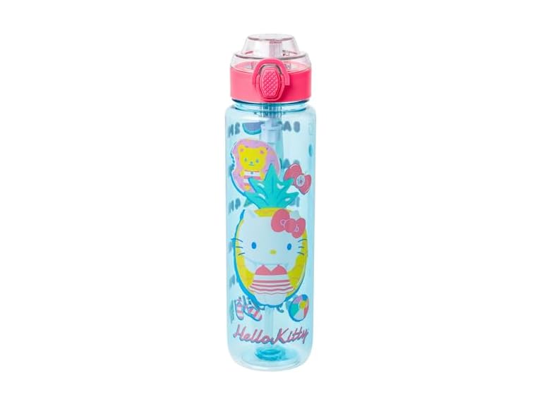 - ADORABLE HELLO KITTY POOL PARTY DESIGN: Stay hydrated in style with this plastic water bottle featuring a charming Hello Kitty Pool Party design, perfect for Hello Kitty fans of all ages.