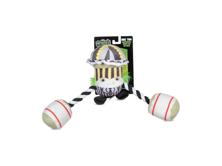 - Get ready for a ghoulish good time with this fun and funky carnival BEETLEJUICE dog toy