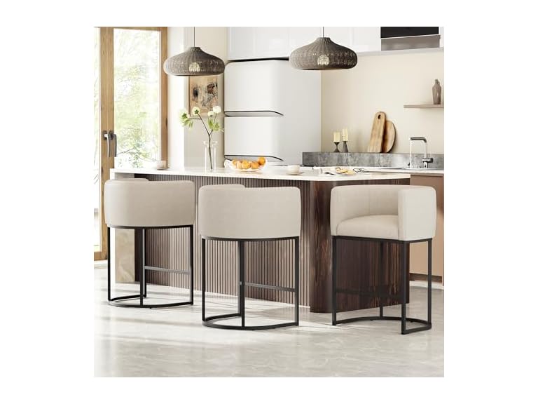 - 【Unique Barrel Shape Design】:The counter stools are made of high-quality linen fabric, making them easy to maintain and clean. Featuring a barrel tub design with a round-back silhouette that embodies a classic appeal with a modern touch, making them suitable for a variety of decor styles.