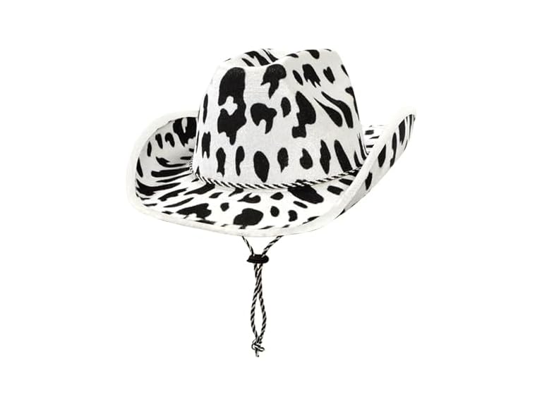 - WESTERN PARTY SUPPLIES: Add some country flair to any outfit with this classic cowboy hat with a twist. You’ll have fun rocking your western style with the soft durable fabric and an exciting black and white cow print