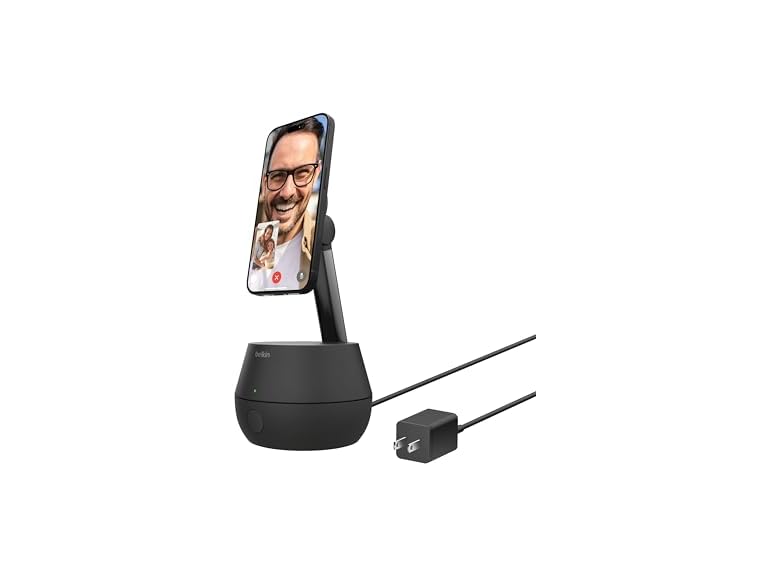 - MOTORIZED AUTO-TILT: With the Belkin Auto-Tracking Stand Pro, you get an easy and convenient way to auto-adjust your viewing angle up to 90 degrees. This will improve mobility during calls or virtual presentations such as cooking while on the phone.
