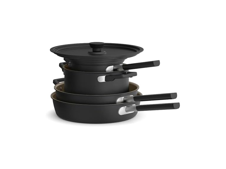 - Universal lids: Two durable aluminum lids fit all pans, reducing clutter and streamlining cooking