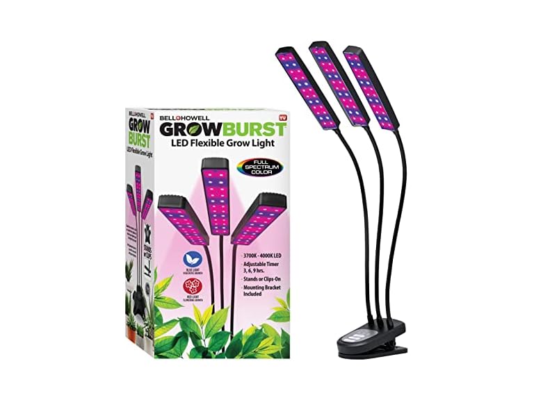 In the Box: (1) Bell+Howell Growburst 24” Indoor Plant Growing Lamp with 8 Brightness Settings, 3 Light Modes Including Full Spectrum UV Light As Seen On TV
