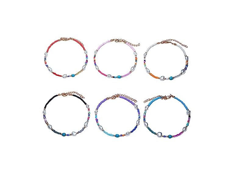 - (1) BEMDOFIG 6Pcs Boho Beaded Anklets Adjustable Beach Bead Anklets Colorful Beads Foot Anklet Set Everyday Dainty Jewelly for Women