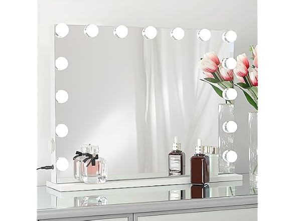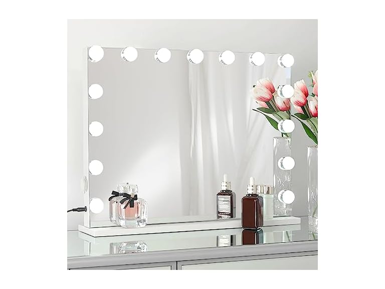 - (1) BENDIC Vanity Mirror Makeup Mirror with Lights,10X Lens,22.8"x 18.1" Hollywood Lighted Vanity Mirror with 15 Dimmable LED Bulbs,3 Color Modes,Touch Control for Bedroom,Tabletop or Wall-Mounted