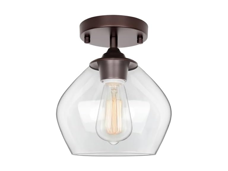 - (1) Modern Semi Flush Mount Ceiling Light with Clear Glass Shade, Industrial Close to Ceiling Light, Brown Hanging Ceiling Light Fixture for Hallway, Bedroom, Dining Room, Entryway, Foyer