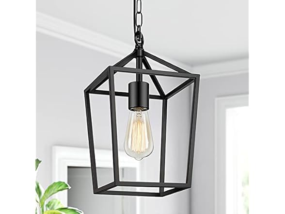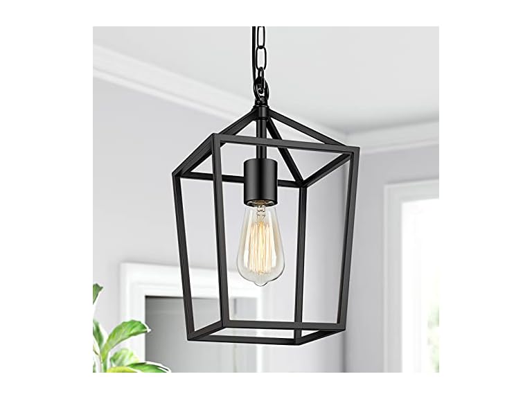 - Farmhouse Rustic Pendant Light: Putting a modern spin on a classic lantern silhouette, the one-light pendant in black finish pairs well with most home-decor styles. Effortlessly create an eye-catching focal point in your bedroom, hallway, foyer, front porch and entryway. It looks nice with only one hung on the ceiling but provides more lighting when installed in multiple over a large kitchen island or dining table.