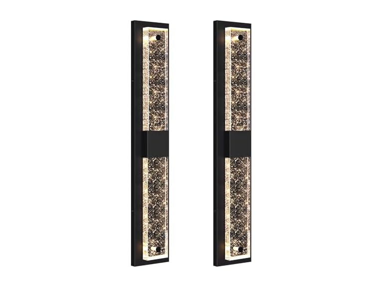 - Stunning Design & 31.5’’ Tall: Indulge in a captivating ambiance with BesLowe outdoor wall lights, showcasing a minimalist geometric frame in a matte black finish, alongside unique crystal glass adorned with bubble pattern. As the light bends while passing through the glass, it produces a stunning effect reminiscent of a celestial starry sky. Definitely a modern and chic addition to your outside space