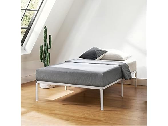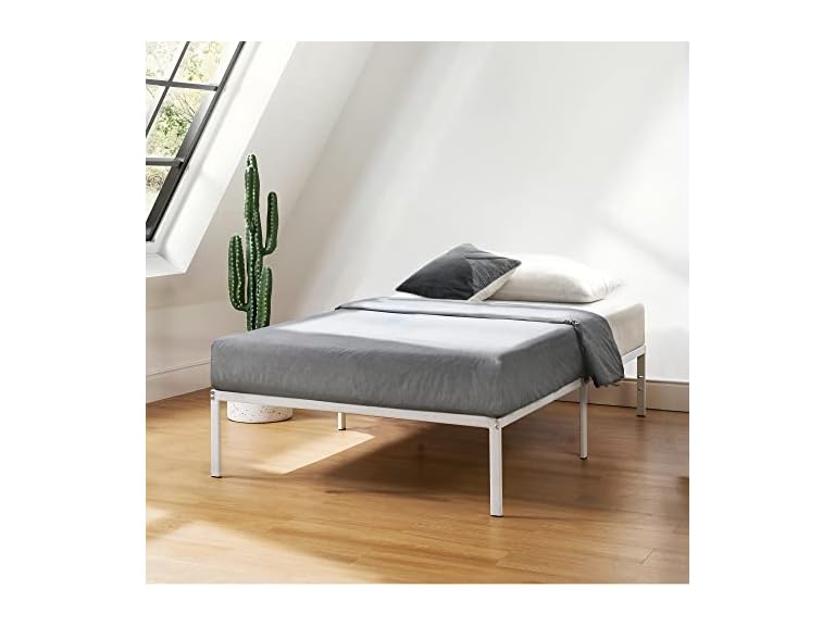 - (1) Best Price Mattress 14 Inch Metal Platform Bed Frame, Heavy Duty Steel Slats, White, Twin