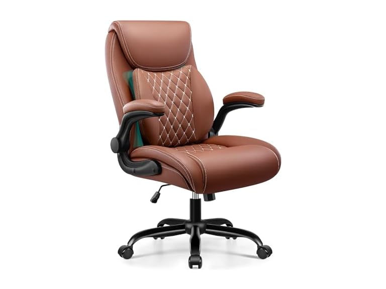 - 【Multi-Functional Flip-Up Armrests】 Our comfortable office chair features soft, space-saving armrests that flip up 90°. The high-quality leather and foam-padded armrests protect your elbows from bumps. Lower them for ergonomic typing support, or raise them for unrestricted movement – perfect for adapting to different workspace tasks.