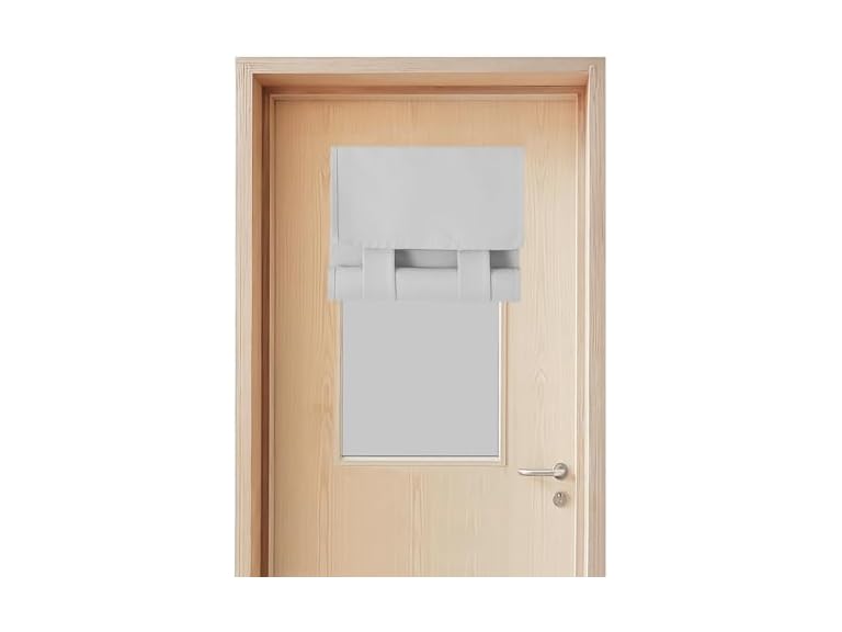 - (1) BETTELOOM Blackout & Lockdown Classroom Door Curtain - Small Solid Cozy Window Curtain Blocks Light & Heat, Quick No-Tools Installation, Privacy for Office & Home(12" Wx30 L, 1 Piece,Greyish White)