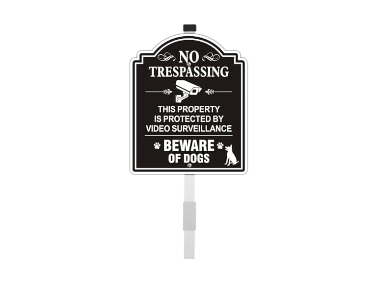 - No Trespassing This Property is Protected by Video Surveillance Beware of Dogs" sign is made of aluminum, sturdy and heavy duty weatherproof.