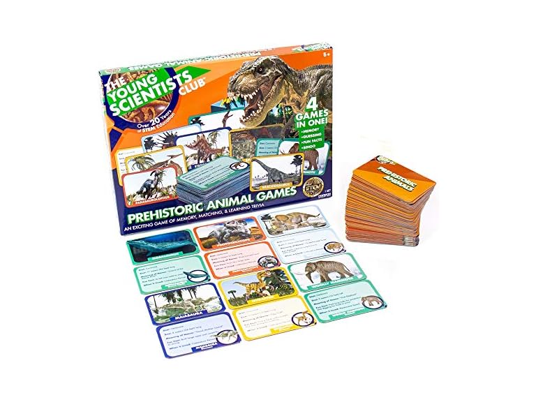 - (1) The Young Scientist Prehistoric Animal Card Games - 4 Games for Age 5 and Up: Matching, Bingo, Memory, Trivia - Hands-On Educational STEM Fun for Kids