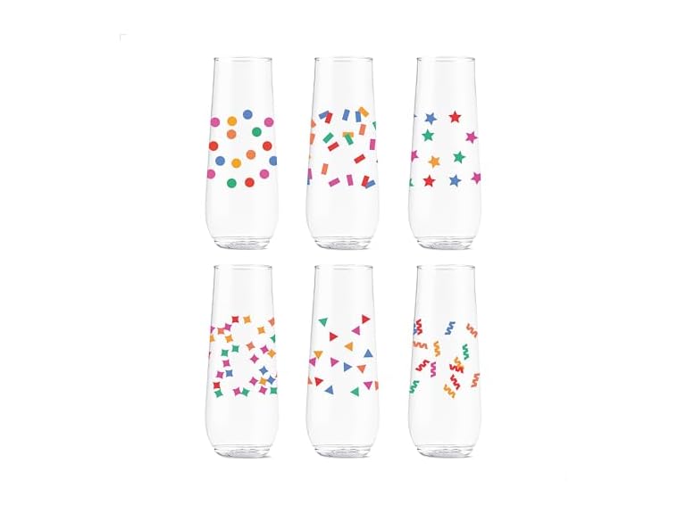 - (1) TOSSWARE POP 9oz Flute Confetti Galore Series, SET OF 6, Premium Quality, Recyclable, Unbreakable & Crystal Clear Plastic Printed Glasses