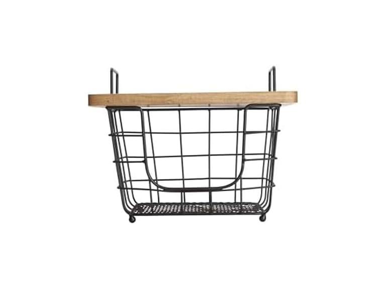 - ATTRACTIVE AND TIMELESS: this storage basket with lid features a wire-framed design with a bold, black finish and a mango wood lid