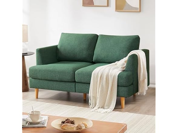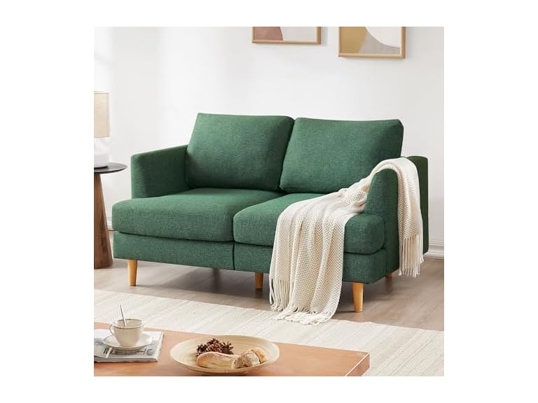 - (1) BFD Mid Century Modern Loveseat Couch, 56" Extra Deep 2-Seat Sofa for Small Spaces, Green