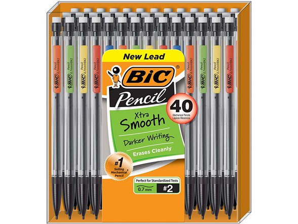 BIC extra-smooth Mechanical pencils feature smooth-writing #2 leads that never need sharpening, do not smudge, and erase cleanly. A dependable choice for performance, One BIC pencil equals 2 ½ wood case pencils. Continuously sharp, these #1-selling pencils help ensure you're always ready to write, draw, sketch, or doodle. The lead advances quickly and easily with a simple click, while the 0. 7mm medium point is versatile enough for a variety of writing activities. The clear barrel with colorful clip offers a sophisticated look, making this Pencil a great choice for schools and offices