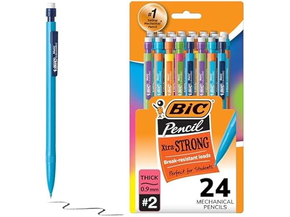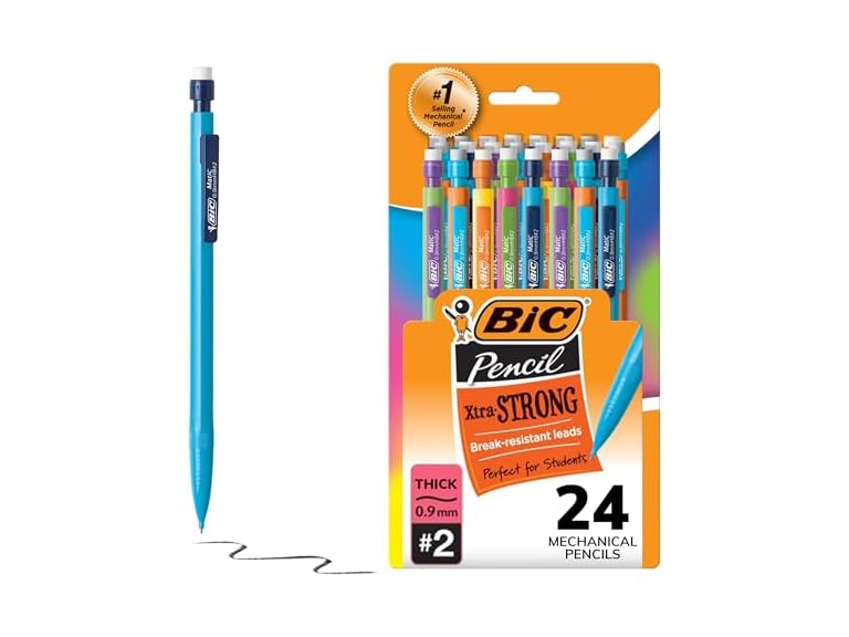 - One 24-count pack of BIC Xtra-Strong Mechanical Pencils With Erasers