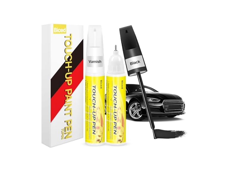 - (1) Biced Touch Up Paint for Cars, Car Black Paint Scratch Repair, 2 in 1 Design Car Remover Scratch Repair Paint Pen, Quick & Easy to Repair Minor Automotive Scratches and Car Wheels Rims Bikes Trucks