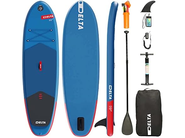 - (1) Bifanuo 10'x32''x6'' Inflatable Stand Up Paddle Board with SUP Accessories & Backpack. Non-Slip Deck,Wide Stance,Bottom Fin,Double Action Pump and Repair Kit.Youth & Adult Standing Boat(Blue-red)