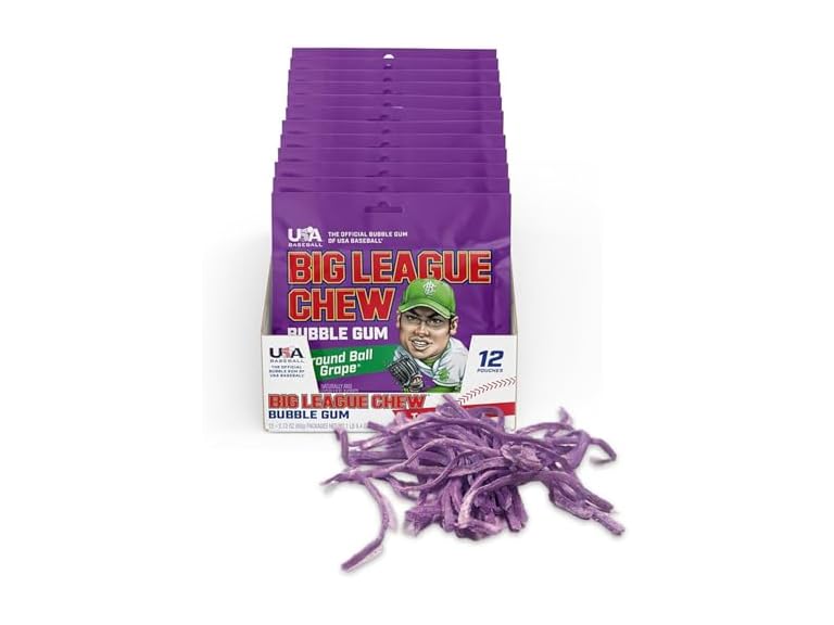 - (1) Big League Chew Ground Ball Grape Bubble Gum - Juicy Grape Flavor Explosion | Ideal for Baseball Games, Teams, Concessions, Parties, and More | Pack of 12 Bags (2.12oz Each)