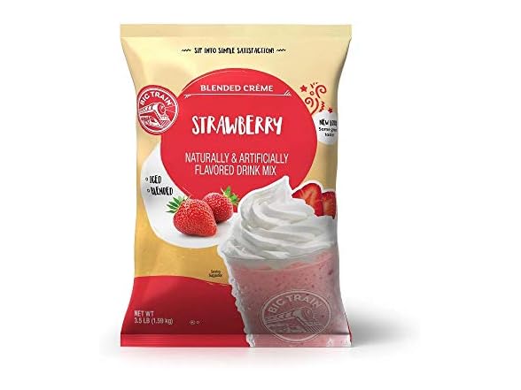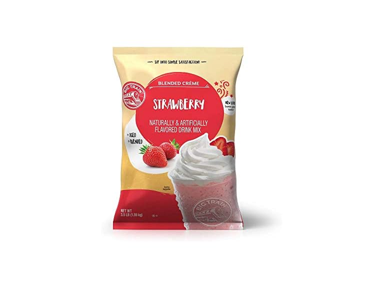 We mix our Big Train Strawberry Blended Crème Frappe Mix’s ripe, fresh-picked strawberry flavor with a creamy base, delivering a delicious, smooth and consistent drink everyone will love. Our strawberry mix is delicious alone, or guests can indulge even more and try it topped with whipped cream for a sweeter finish. Serve hot, pour over ice or blend the frappe mix with ice for a delicious Big Train frappe that will keep guests coming back for more.