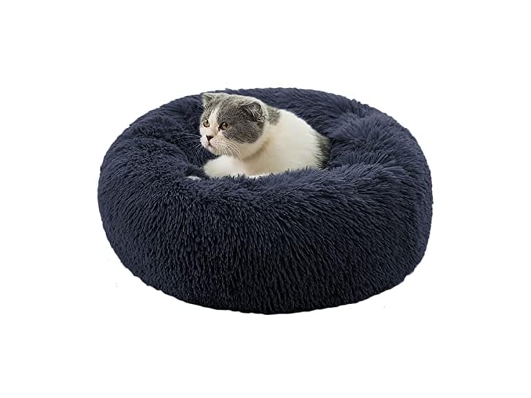 - BinetGo Dog Bed Calming Cat and Dog Beds, 20 inches Navy Cat Bed or Puppy Bed, Original Calming Donut Cat and Dog Bed in Shag Fur– Machine Washable, Anti Slip Waterproof Bottom