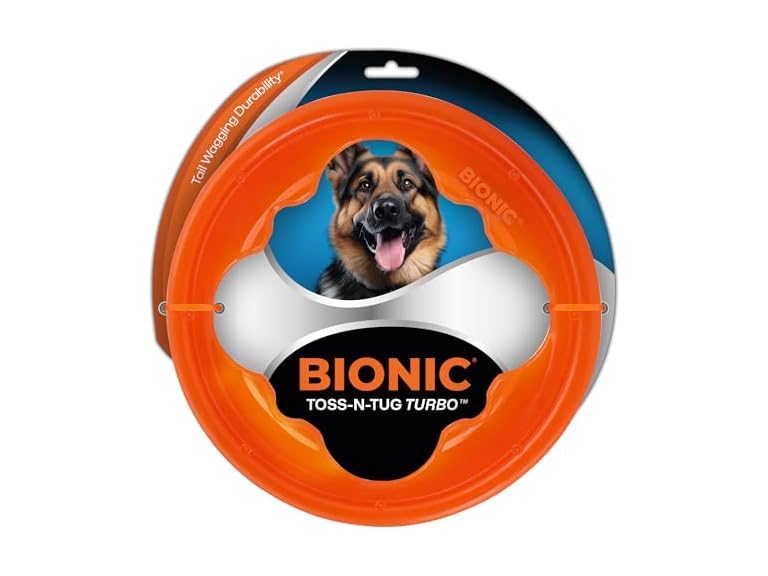 - BIONIC Toss-N-Tug Turbo Dog Toy - High-Visibility Ultimate Three-in-One Dog Toy, Lightweight Design for Light Chewers
