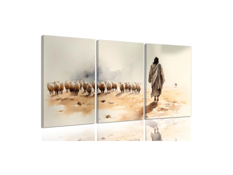 - (1) bizabuy 3Pcs Jesus And Lamb Canvas Wall Art Jesus Left 99 Lost Lambs Wall Decor Pictures Christian Spiritual Healing Posters Prints Paintings for Living Room Bedroom Church Prayer Room Artwork Home Decoration