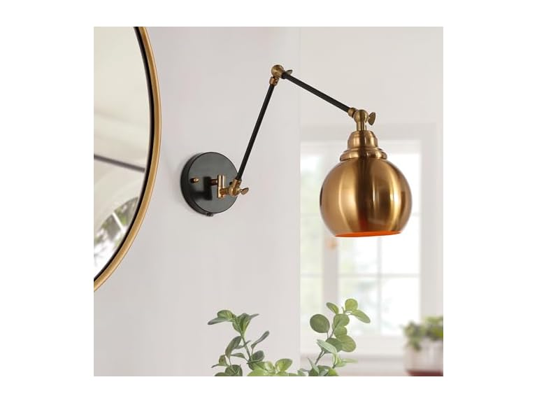 - GEPOW Black Gold Swing Arm Wall Sconce, Modern Plug-in or Hardwired Sconces Lighting, Adjustable Wall Mounted Lamp with On/Off Switch for Bedroom, Kitchen, Living Room and Bathroom