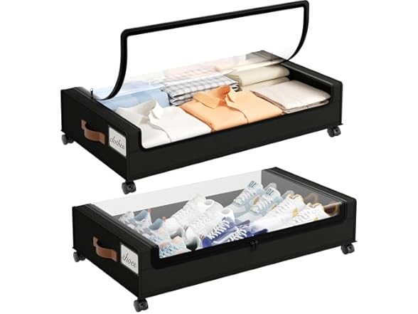 - Clear Lid & Double Zipper: Underbed storage bins feature a clear lid and dustproof double zipper. The clear lid and labeled design let you see what's inside at a glance. Plus, the double-zipper seal locks out moisture, grease, and dust, keeping everything clean, organized, and free from clutter