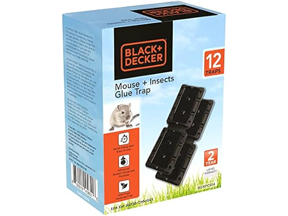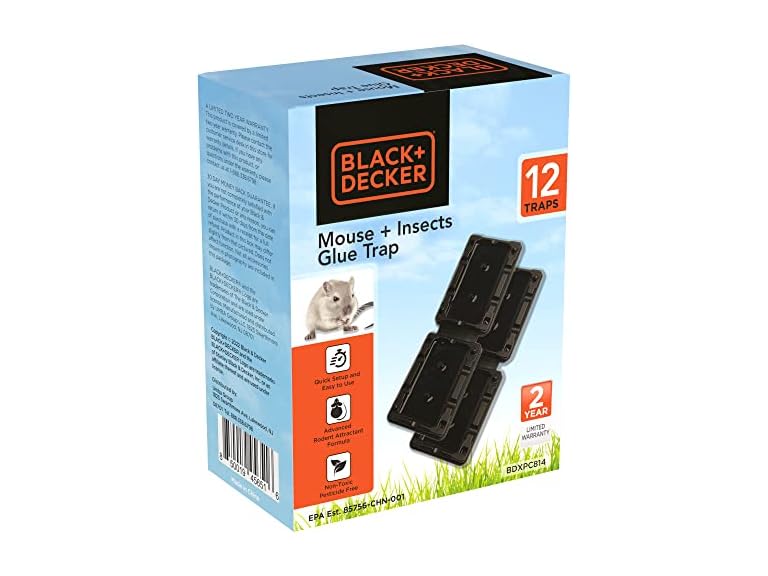 - BLACK+DECKER Glue Traps for Mouse & Insect- Heavy- Duty Sticky Traps for Mice, Small Rats, Flies, Cockroaches & Other Bugs- Eco Friendly, Odorless Pest Remover- 12 Pack, Black