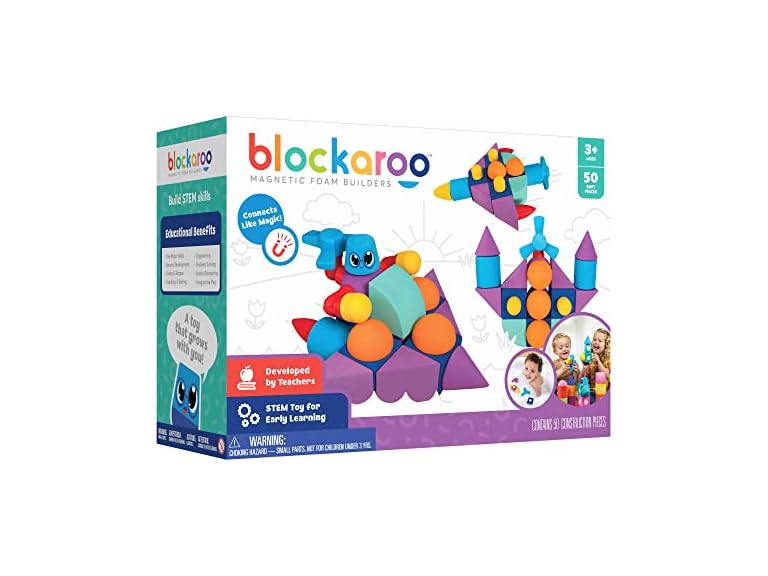 - Blockaroo Magnetic Foam Building Blocks - 50-Piece Set, Bath Toys for Toddlers, Preschool Toys, Bathtub Toys, Sensory Toys, Blocks for Toddlers 3-5, Engineering Toys for Kids 3-5, Bath Blocks