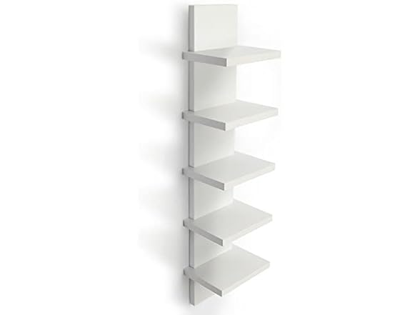- (1) Bloddream 5 Tier Wall Shelves White, Vertical Column Shelf Floating Storage Home Decor Organizer Tall Tower Design Utility Shelving Bedroom Living Room, 30.7, 31